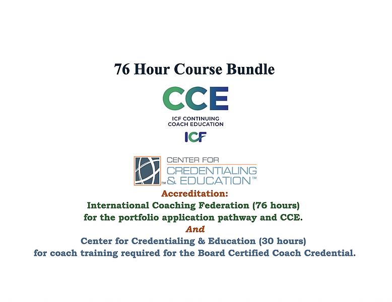 Complete this transformative class in just 36 hours! Earn 30 hours toward your Board Certified Coach (BCC) credential and 36 ICF-accredited Continuing Coach Education (CCE) hours—all in one immersive experience. Distinguish yourself by aligning with